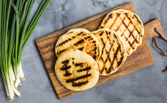 Kom en anelse olie på begge sider af brødene og grill dem i ca. 5 min. på hver side ved 180-200 grader. Servér straks.