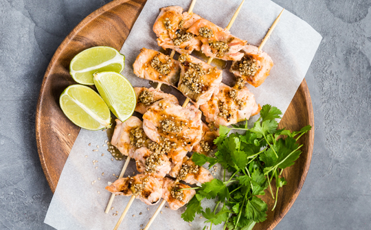 Det er tvillingerne Laura og Christine, der står bag Twin Food. De to dygtige madbloggere bor i Aarhus og er begge civilingeniører, men bruger madlavningen og bloggen som et frirum i hverdagen. Nyd deres lækre grilspyd her og find flere gode opskrifter på twin-food.dk